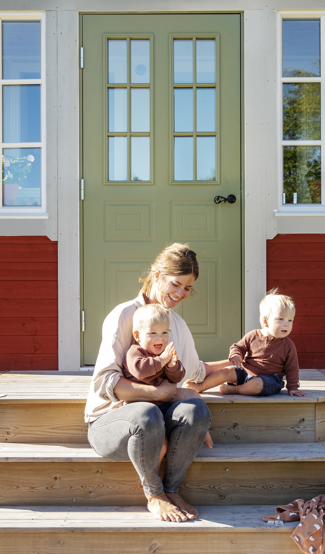 Du kan låsa och låsa upp dörren på flera smidiga sätt: med kod via trådlös knappsats, via mobilapp, Bluetooth, Keyless Entry med platstjänster – eller med traditionell nyckel.