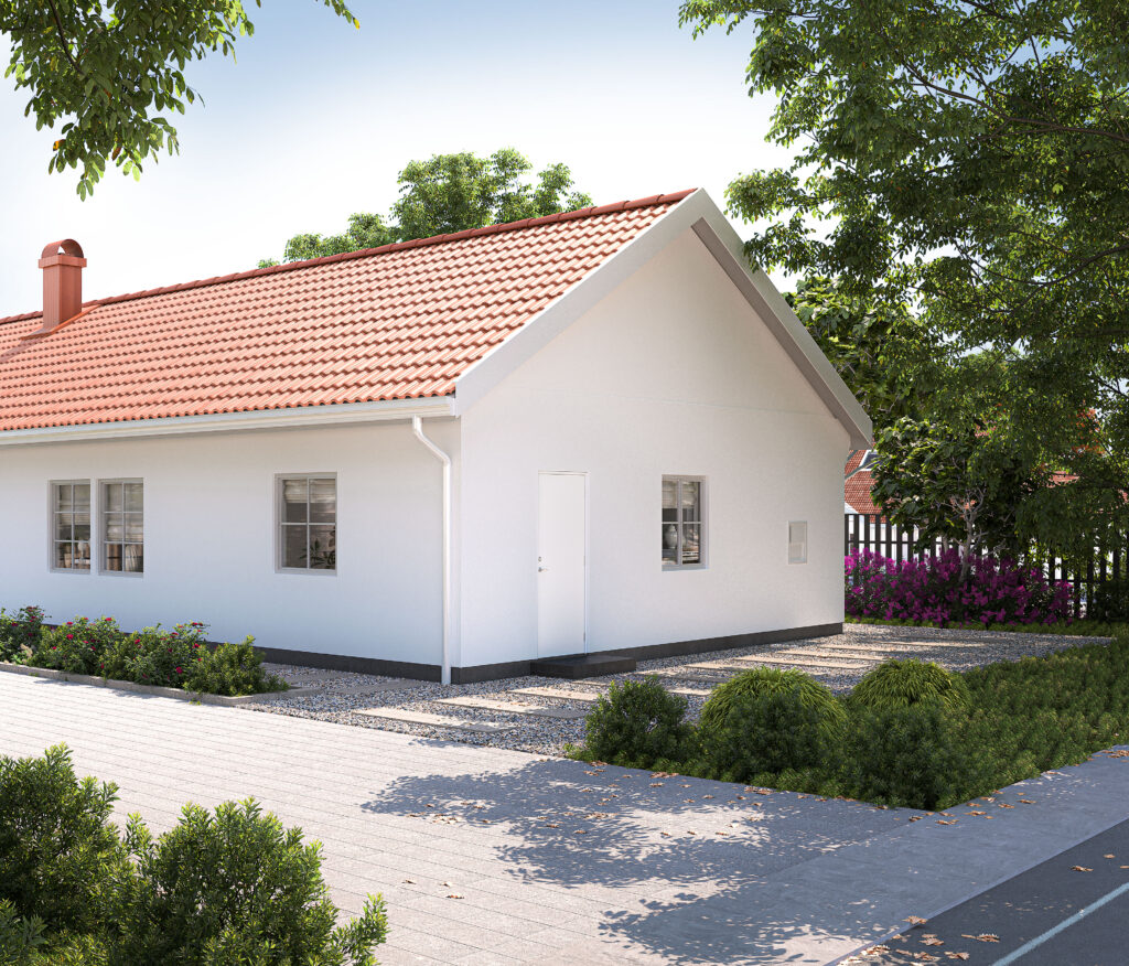Varje dörr är utrustad med en droppkant på dörrbladet, som ser till att regnvatten effektivt leds bort. Detta minimerar risken för fuktpåverkan och ökar livslängden på dörren.