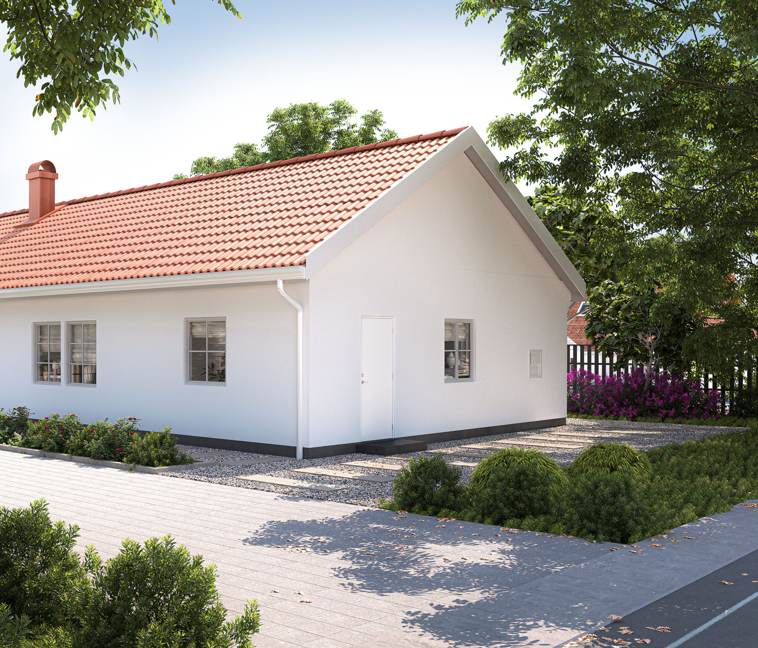Alla ytterdörrar är försedda med en 25 mm låg ektröskel med aluminium på utsidan, vilket gör dem både praktiska och estetiskt tilltalande.